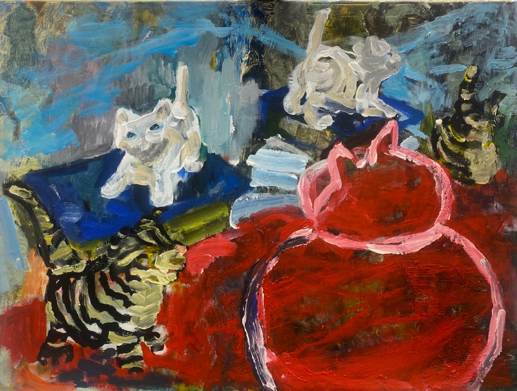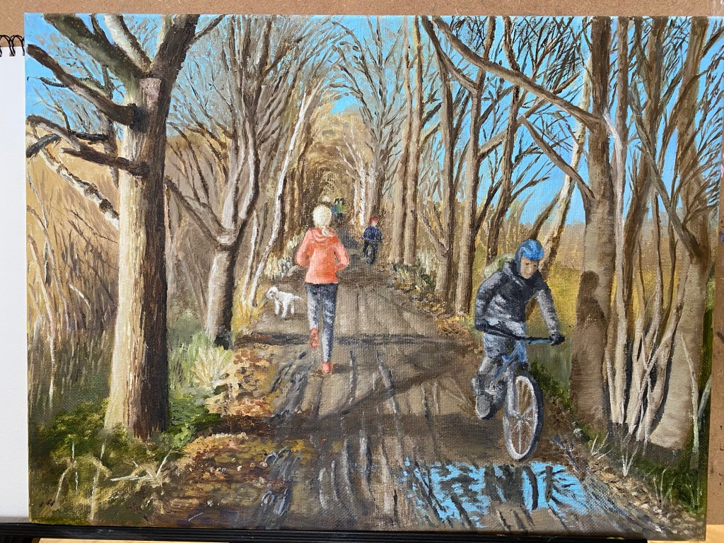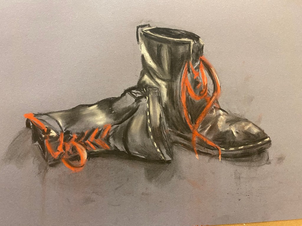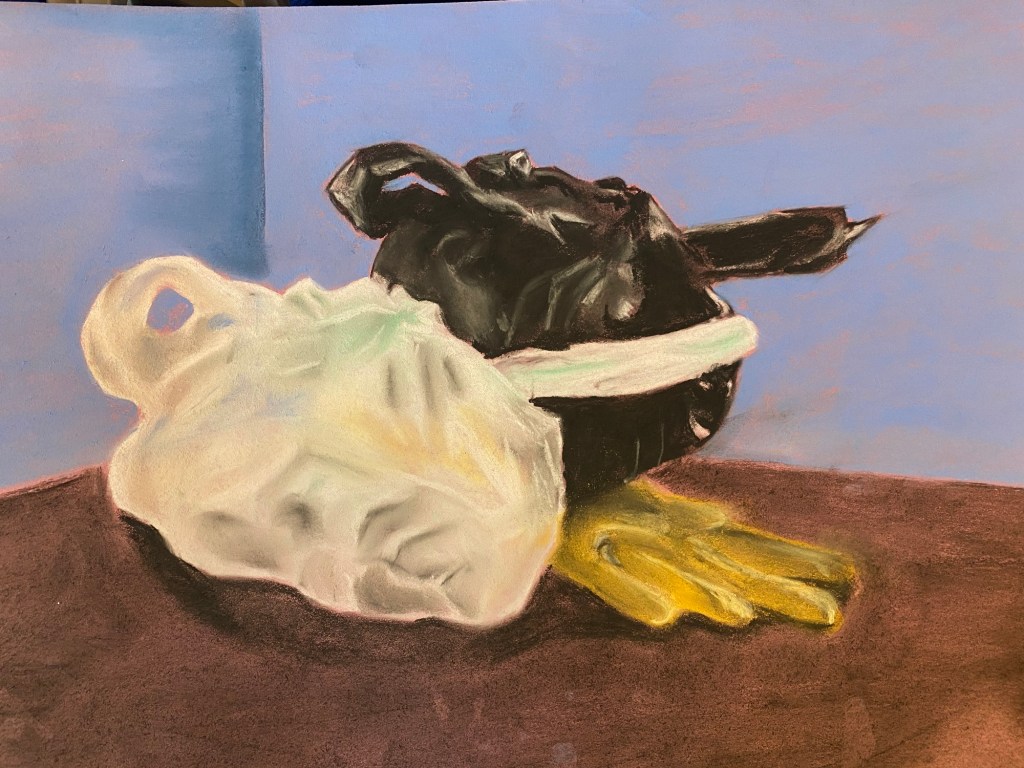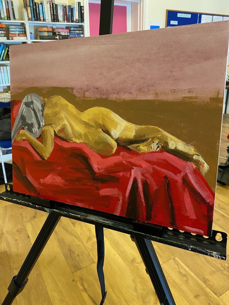 The programme is varied with painting and drawing dominating but we also sometimes sculpt with clay and plaster. We explore different art movements from Cubism to Abstract Expressionism and different painting and drawing techniques. Still life using contemporary as well as traditional objects is popular, as is landscape work from photographs. A couple of times a year we have a professional model for life drawing and painting. Alison welcomes suggestions for topics and people can also work on their own projects.