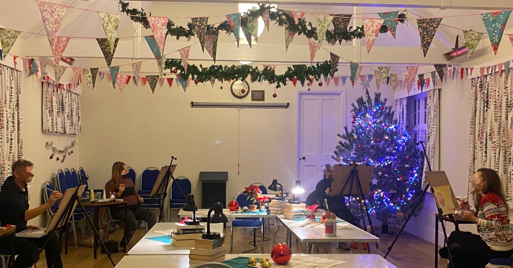 Please enquire about the class fee for 2024/25. This is kept as low as possible and includes drawing materials (paper, charcoal, chalk and pastels) as well as the use of easels and drawing boards and all handouts for each new topic. In addition to keeping the class fee as low as possible, good quality painting materials are available to buy at cost price. Occasionally there are small additional fees for example when we have a model. For your first class you do not need to bring any materials with you – they can all be provided! You can also try out and pay for just one class before committing to pay for the term.